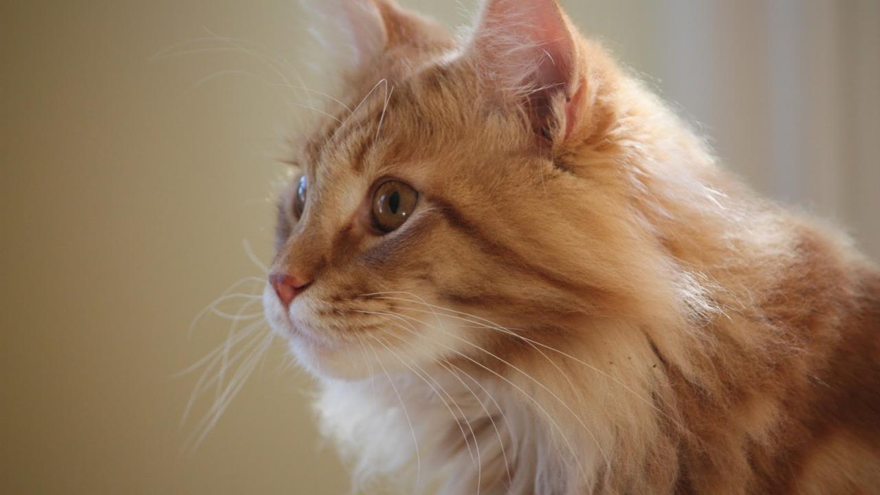 Обои Рыжий кот мейн-кун кого-то увидел