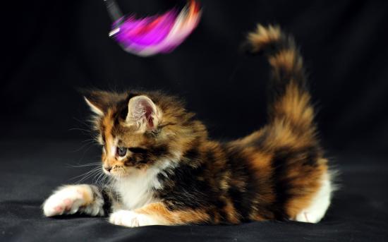 Обои Маленький красивый кот мейн-кун играет