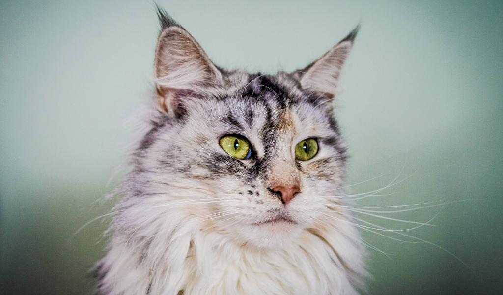 Обои Серебристый кот мейн-кун с зелёными глазами