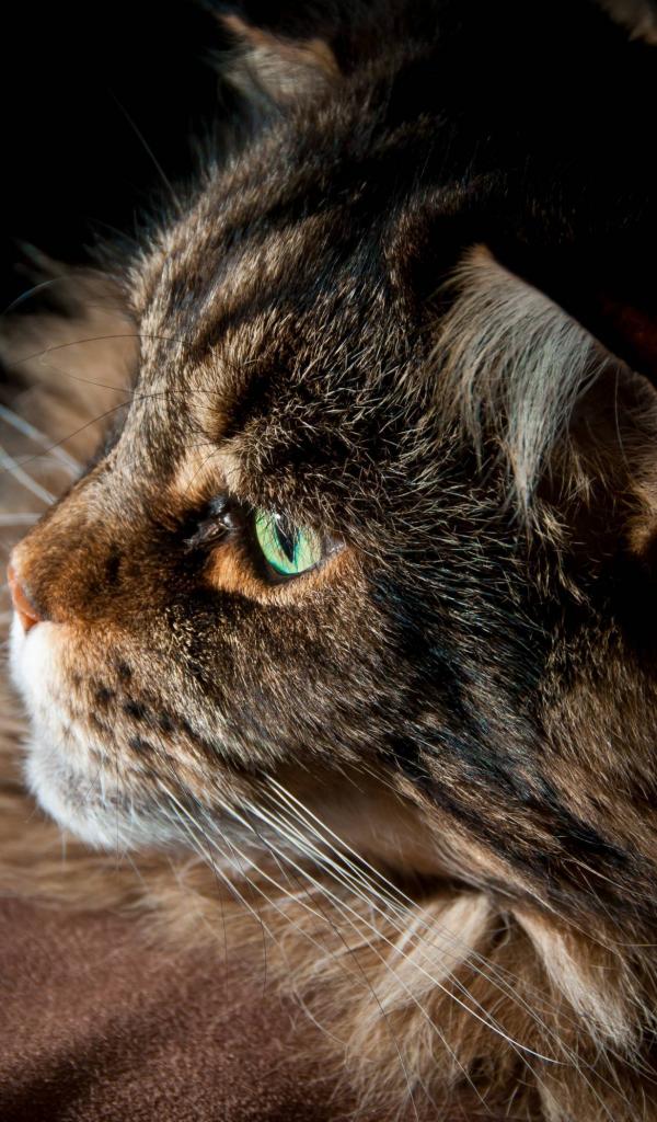 Обои Серьёзный кот мейн-кун с зелёными глазами