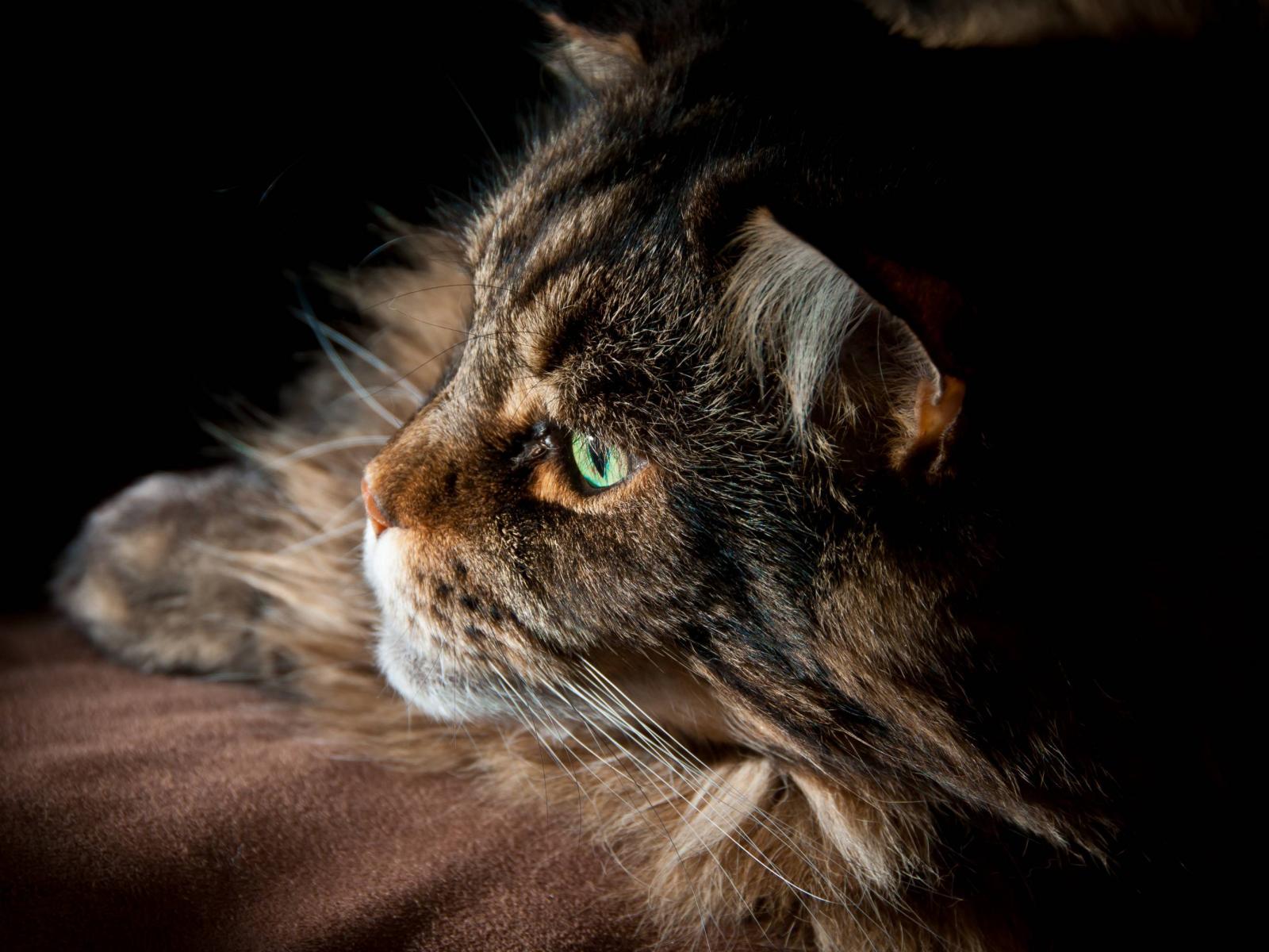 Обои Серьёзный кот мейн-кун с зелёными глазами