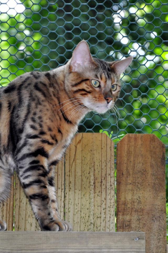 Обои Бенгальский кот на заборе