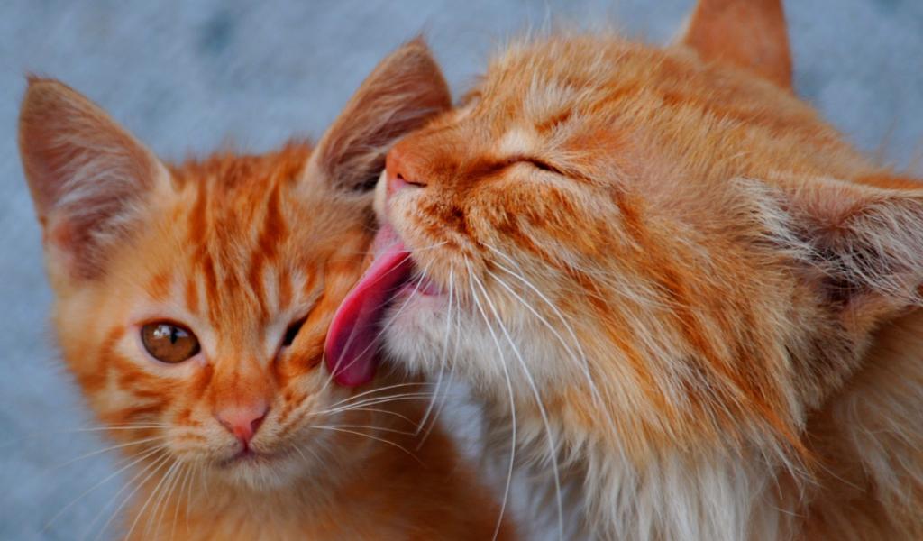 Обои Маленький красивый кот мейн-кун лижет лапу