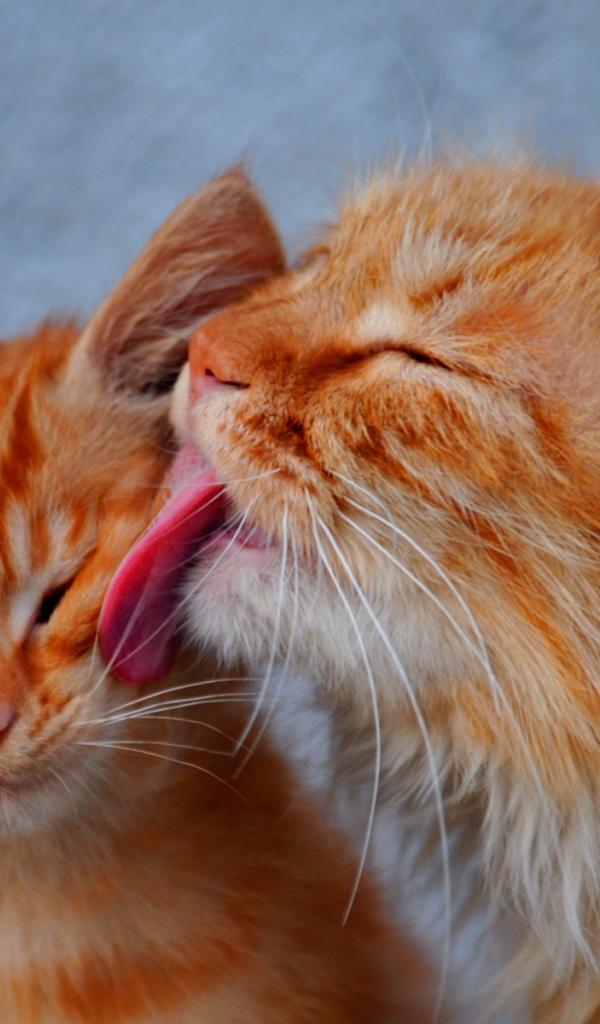 Обои Кот лижет кошку
