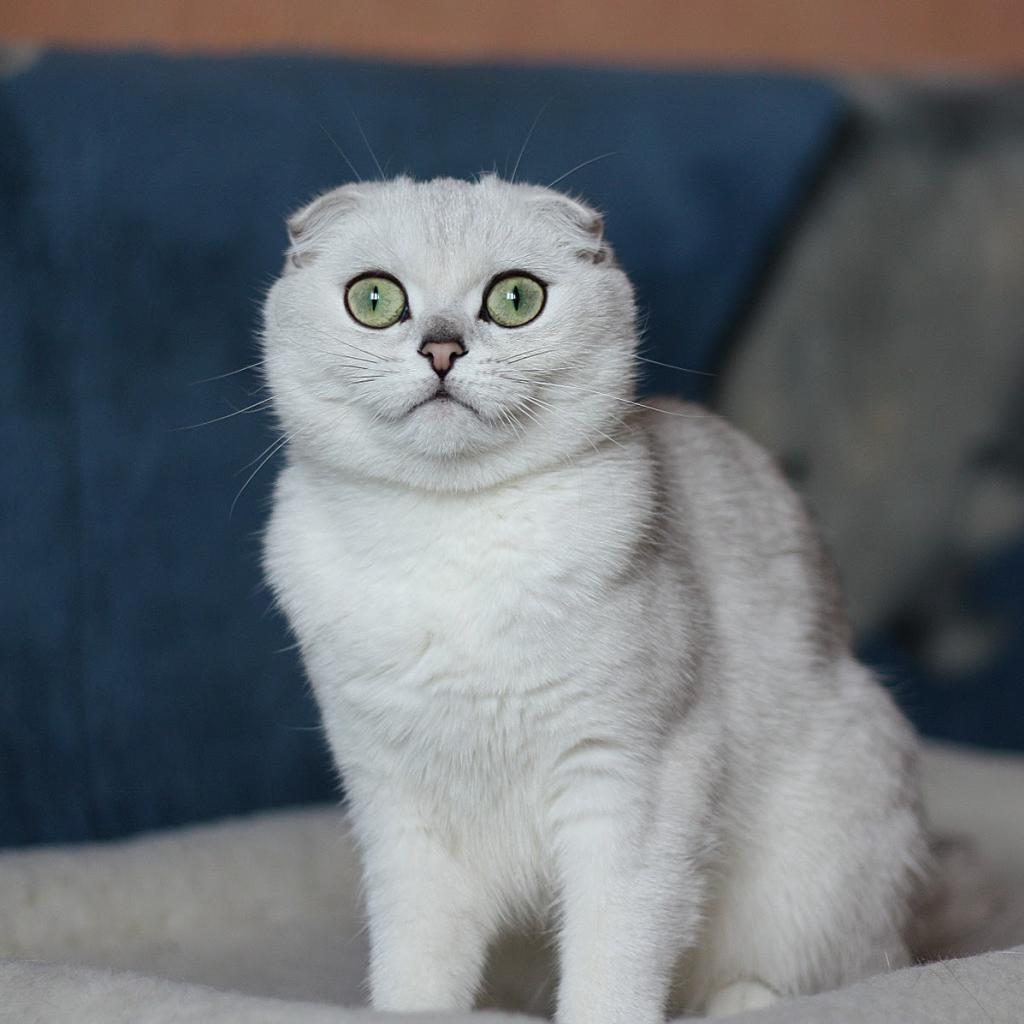 Обои Белый шотландский вислоухий кот с зелёными глазами