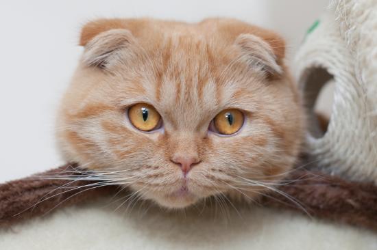 Обои Симпатичный рыжий шотландский вислоухий кот с рыжими большими глазами