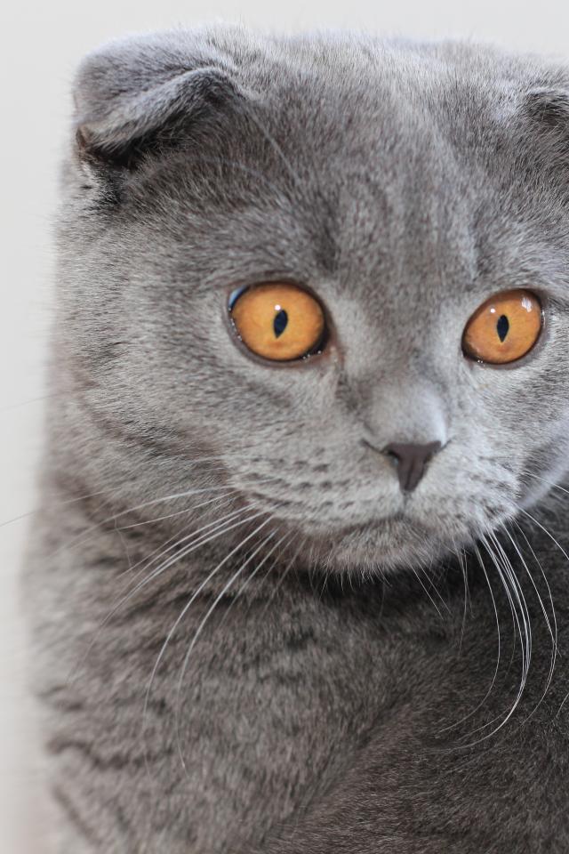 Обои Серый шотландский вислоухий кот с большими карими глазами