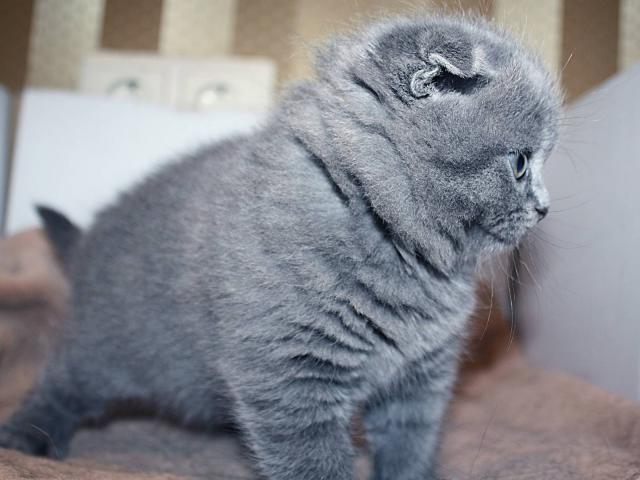 Обои Маленький серый шотландский вислоухий кот