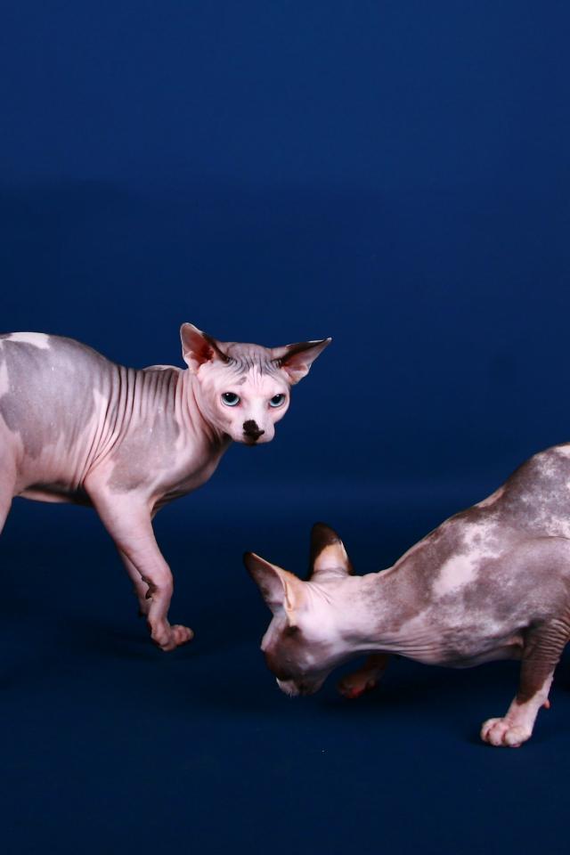 Обои Коты сфинкс на синем фоне