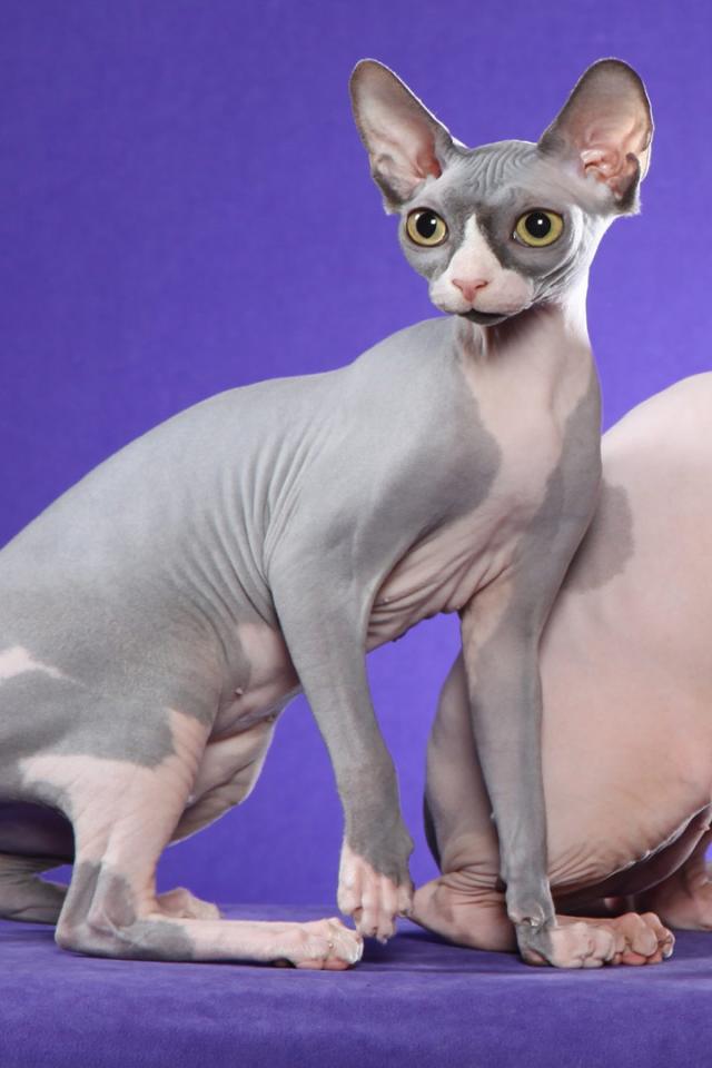 Обои Коты сфинкс на фиолетовом фоне