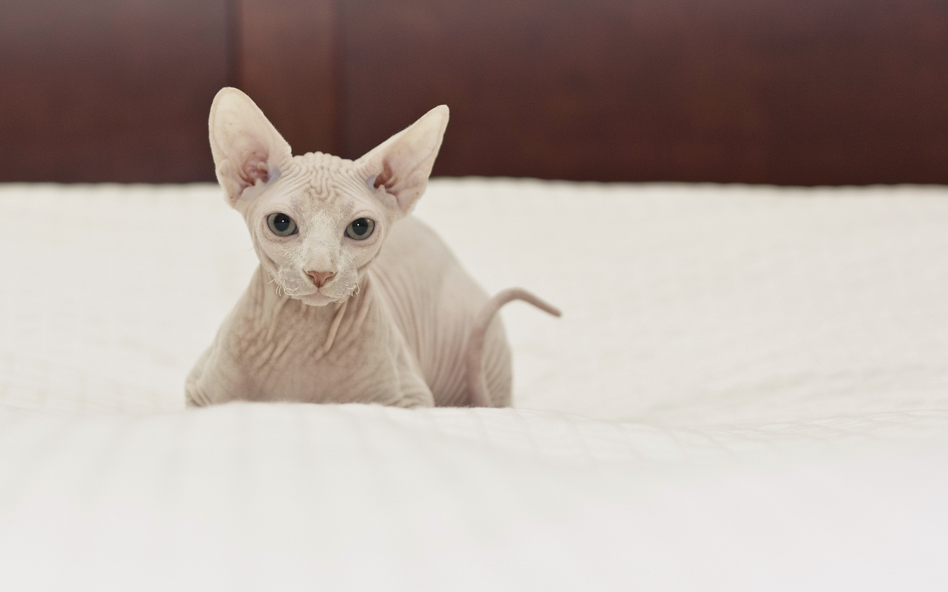 Обои Белый кот сфинкс на кровати