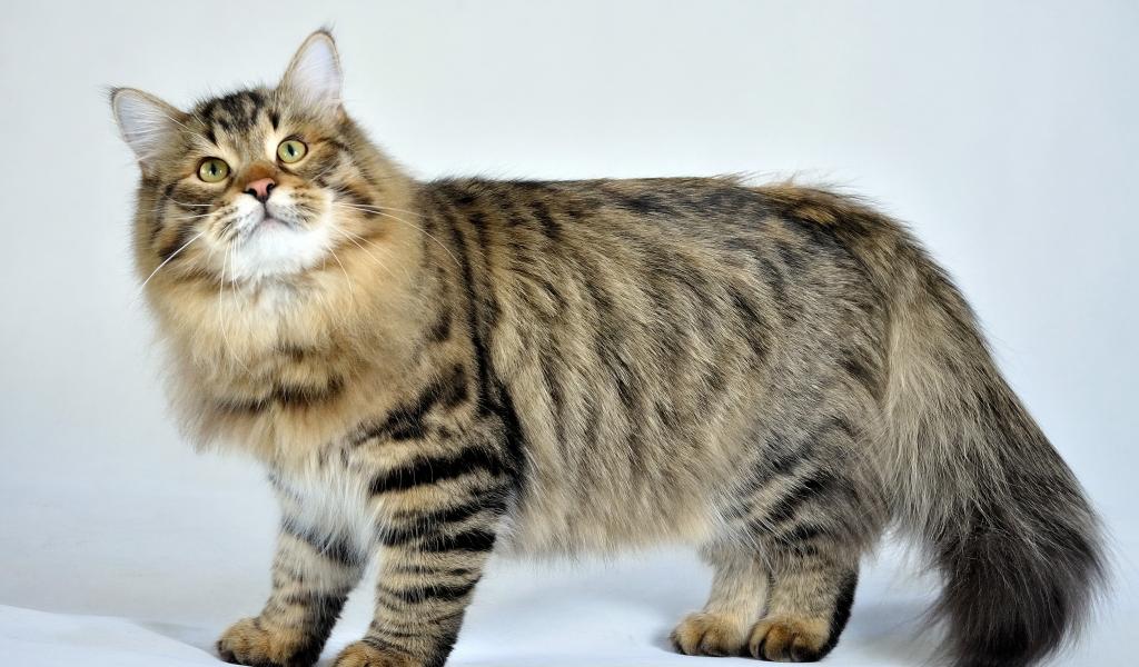 Обои Сибирский кот позирует на белом фоне
