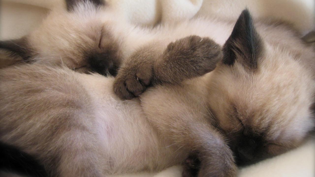 Обои Маленькие сиамские коты отдыхают