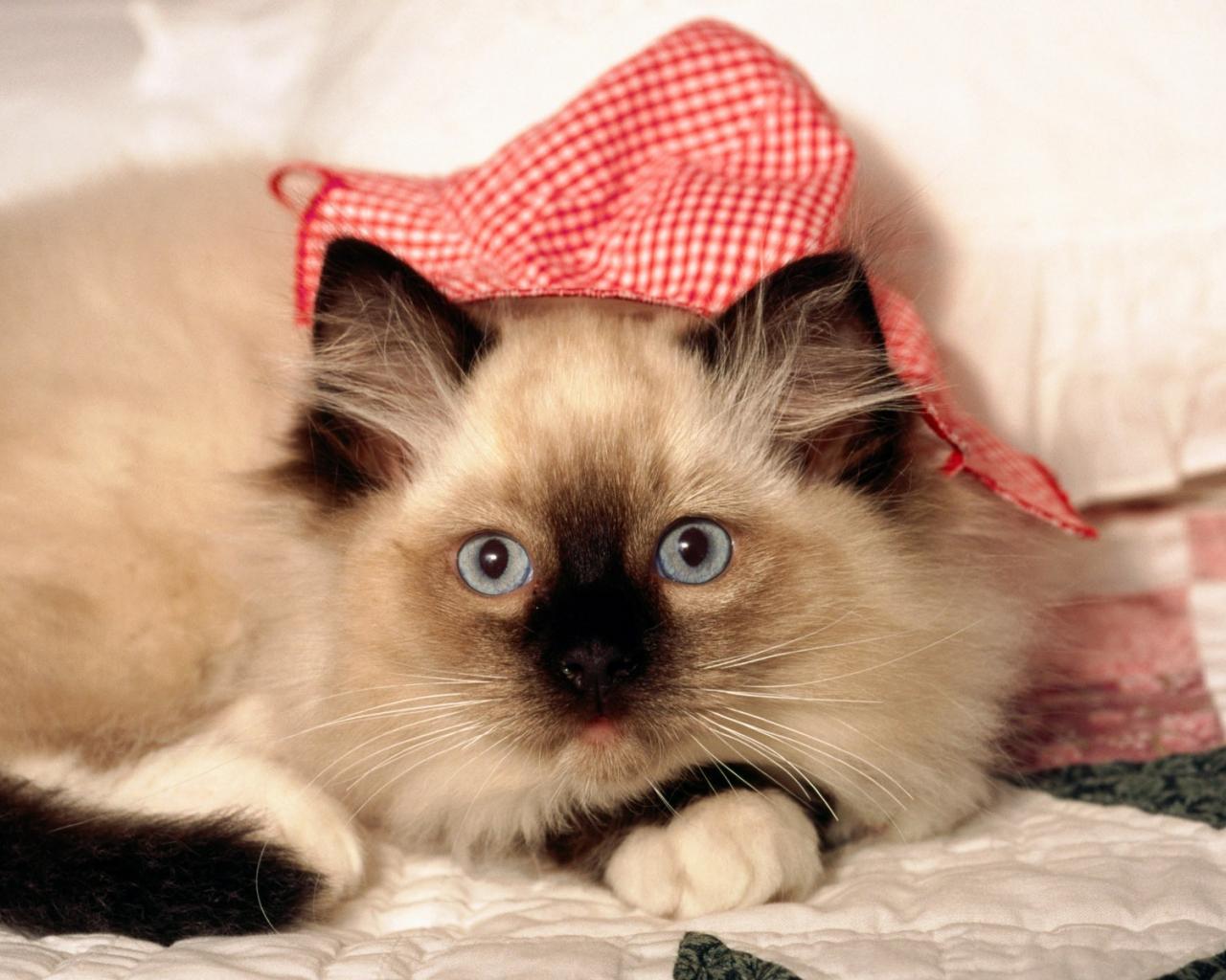 Обои Пушистый сиамский кот позирует