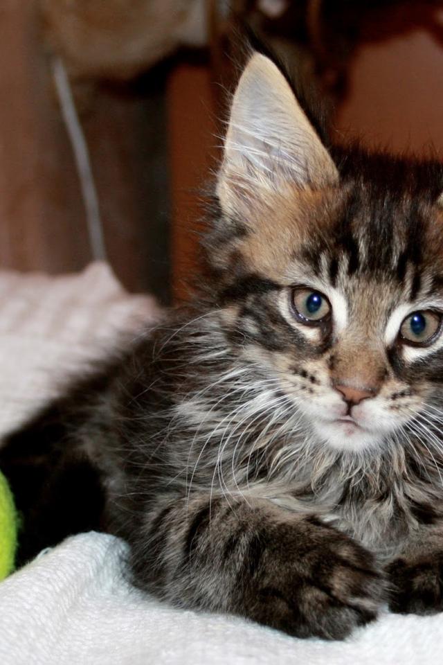 Обои Маленький красивый кот мейн-кун с мячом
