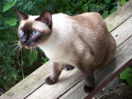 » Обои Сиамский кот сидит на скамейке