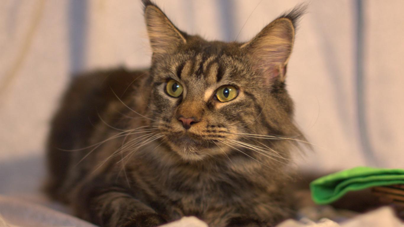 Обои Серьёзный кот мейн-кун с зелёными глазами