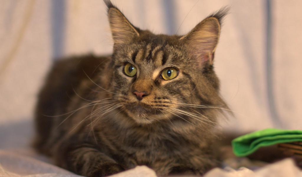 Обои Серьёзный кот мейн-кун с зелёными глазами
