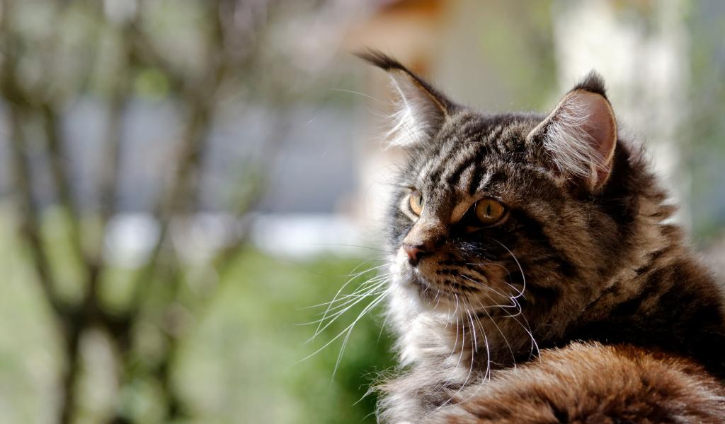 Обои Кот мейн-кун с зелёными глазами кого-то увидел