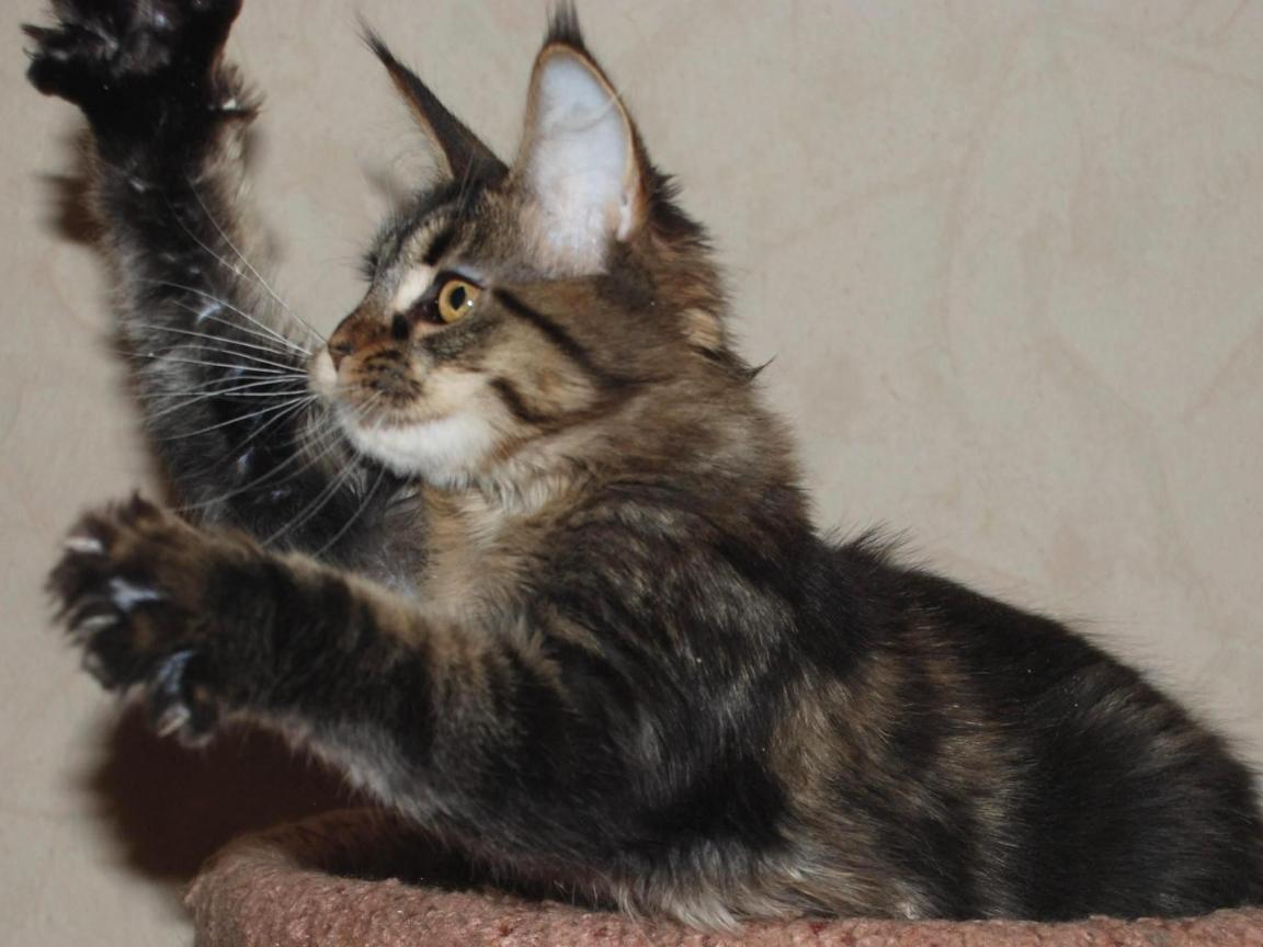 Обои Маленький красивый кот мейн-кун играет