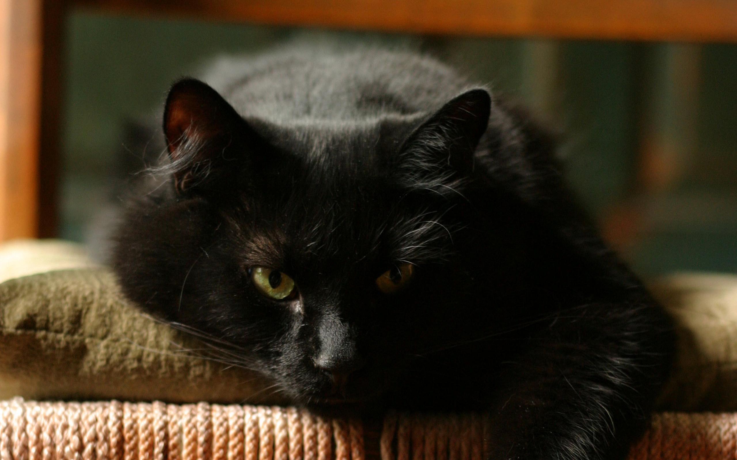 Обои Чёрный кот отдыхает