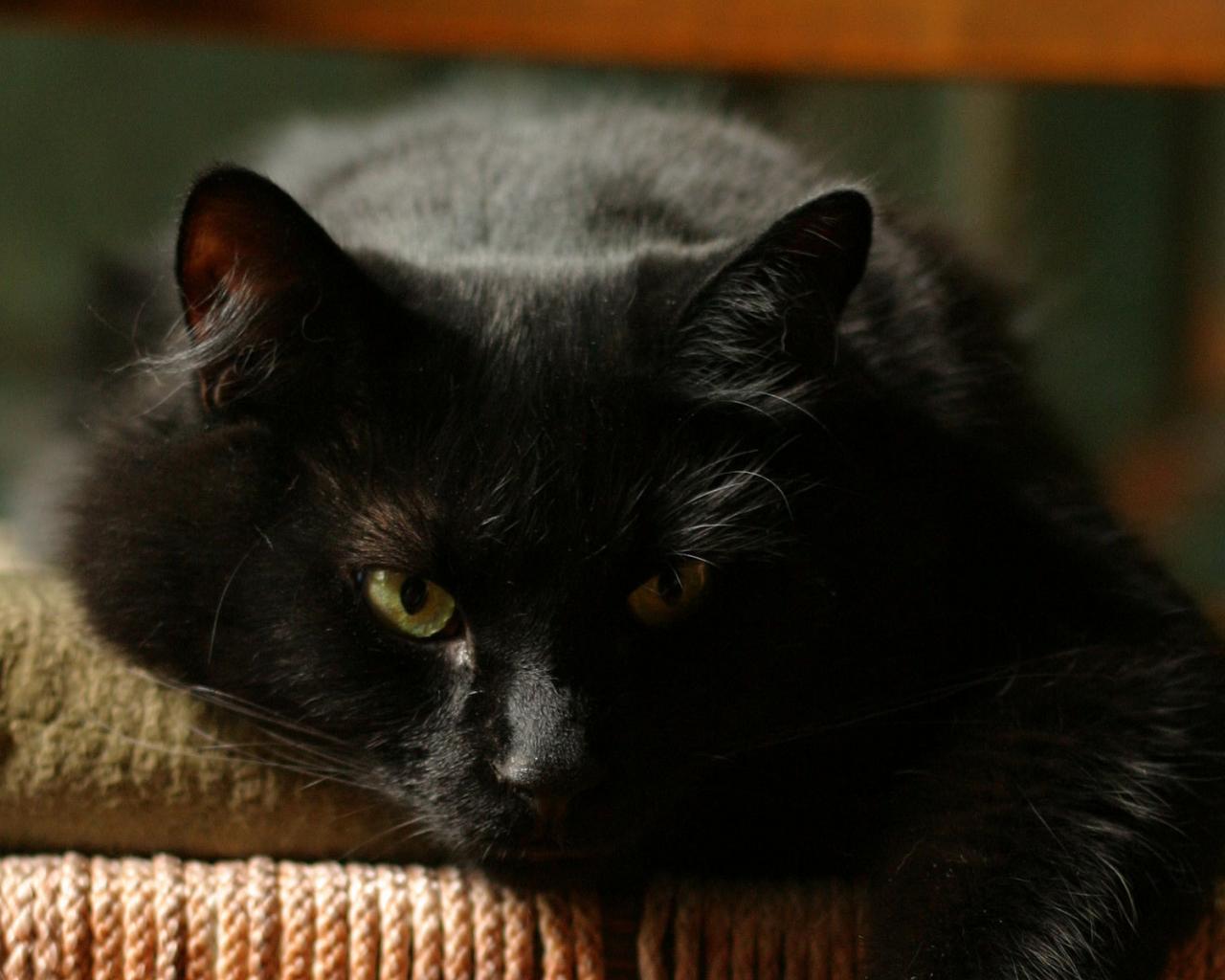 Обои Чёрный кот отдыхает