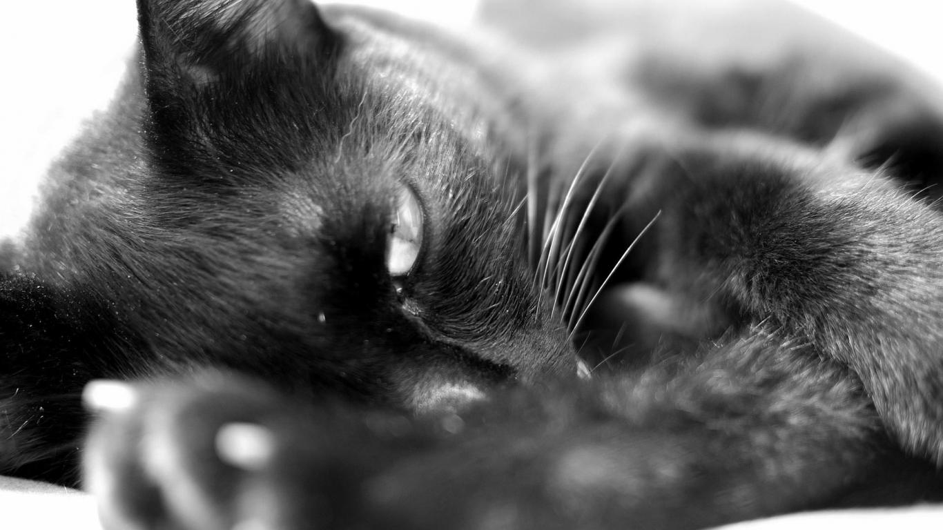 Обои Сонный чёрный кот