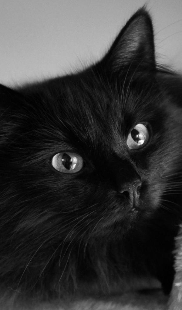 Обои Чёрный красивый грустный кот
