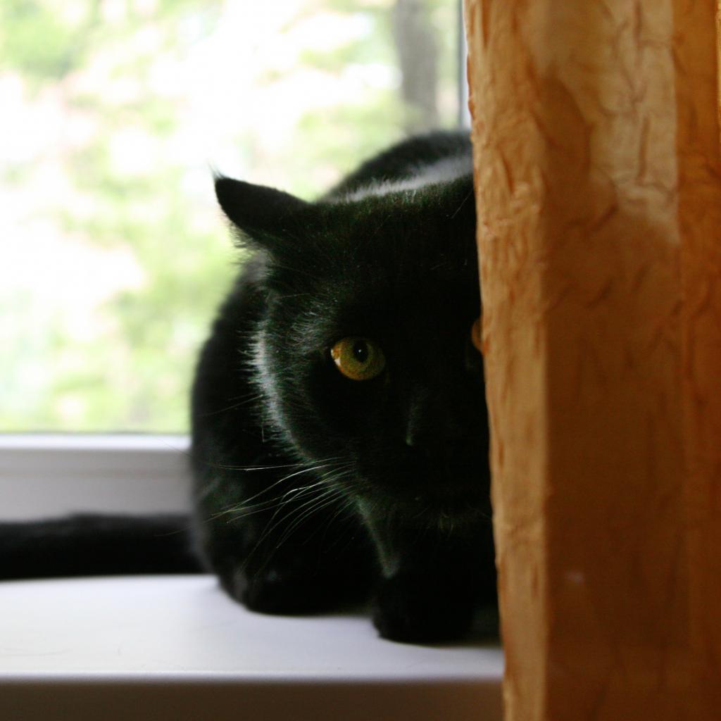 Обои Чёрный кот думает, что его не видно