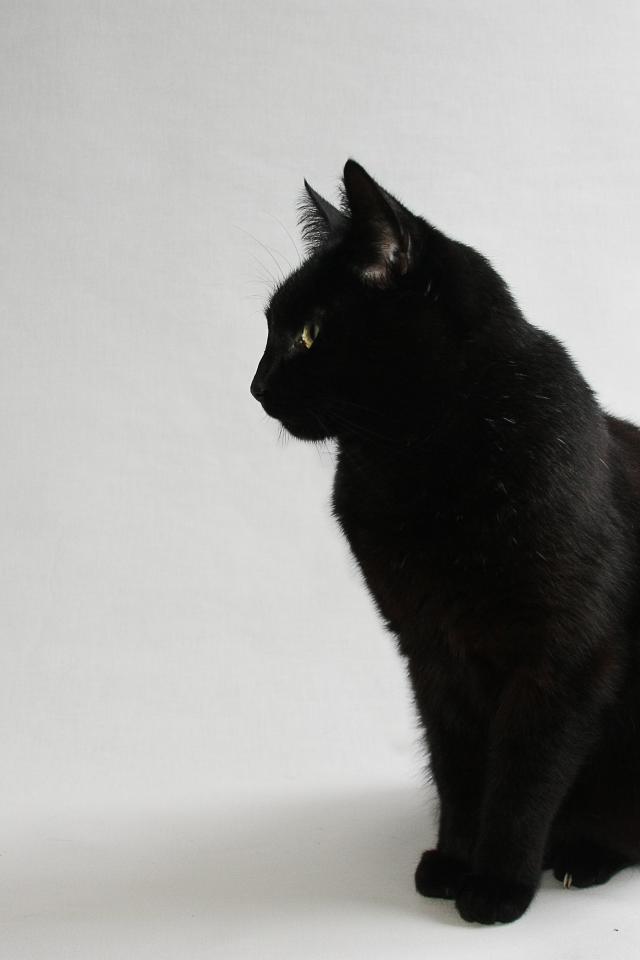Обои Чёрный кот на белом фоне