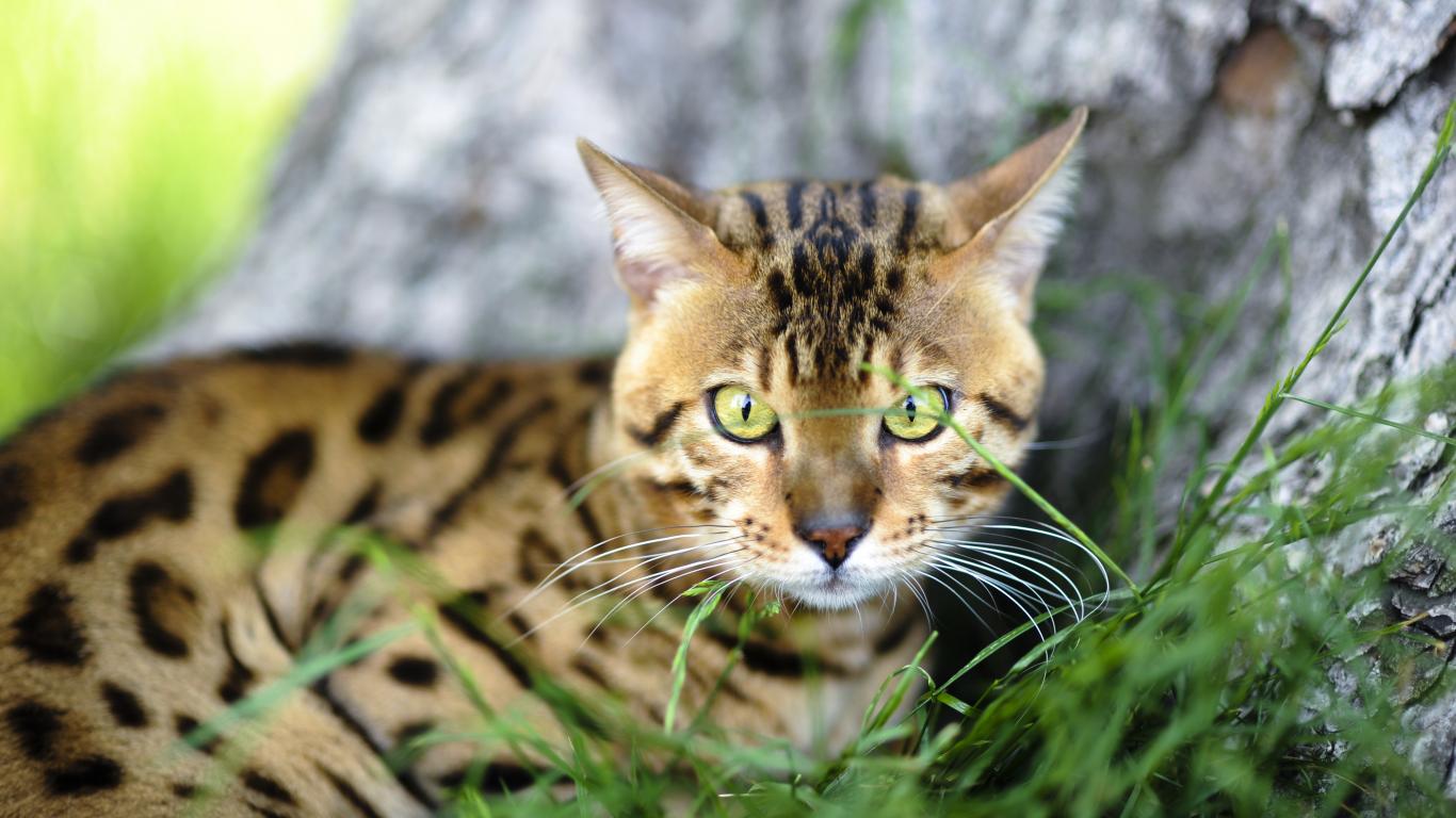 Обои Бенгальский кот возле дерева