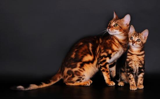 Обои Бенгальские коты на сером фоне