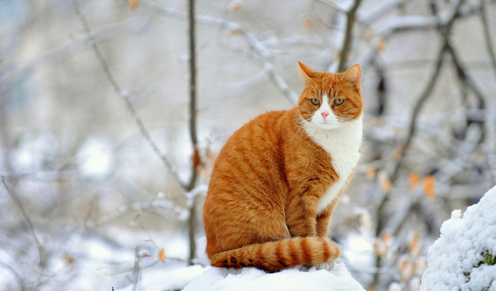 » Обои Рыжий кот зимой сидит на сугробе