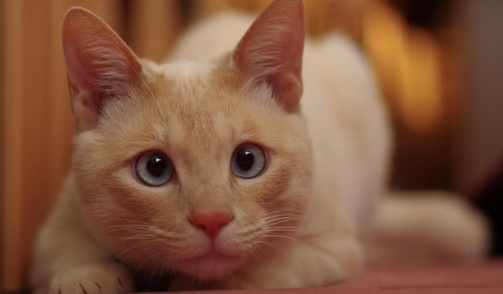 Обои Рыжий кот с голубыми глазами кого-то увидел