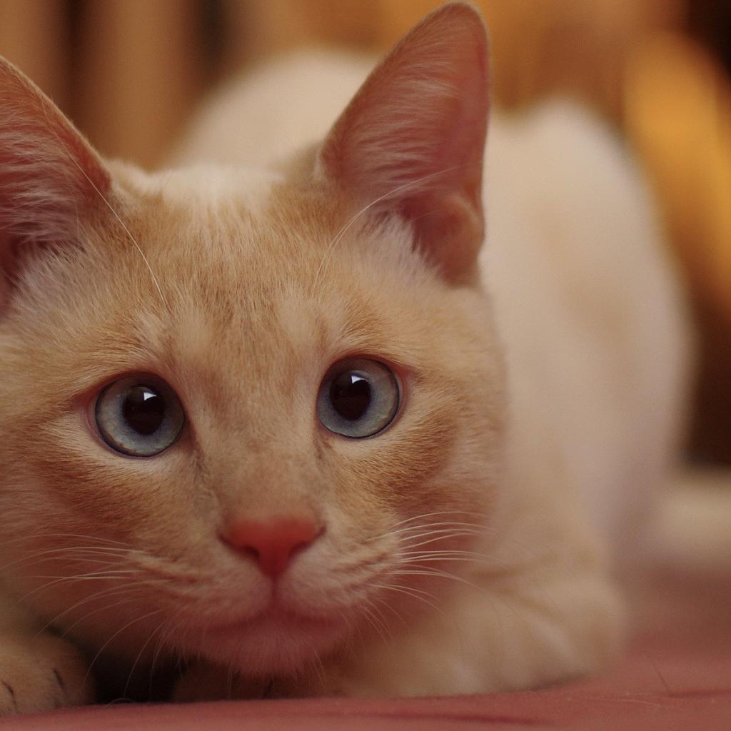 Обои Рыжий кот с голубыми глазами кого-то увидел