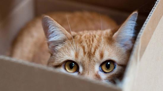 Обои Рыжий кот прячется в коробке