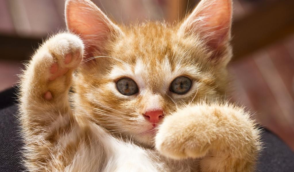 Обои Маленький рыжий кот играется