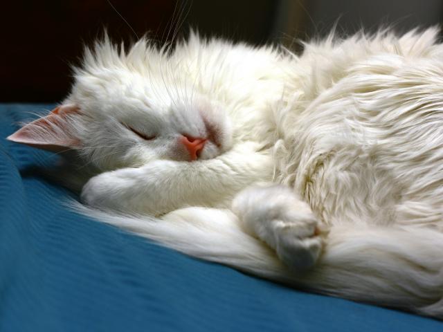 Обои Белый кот сладко спит