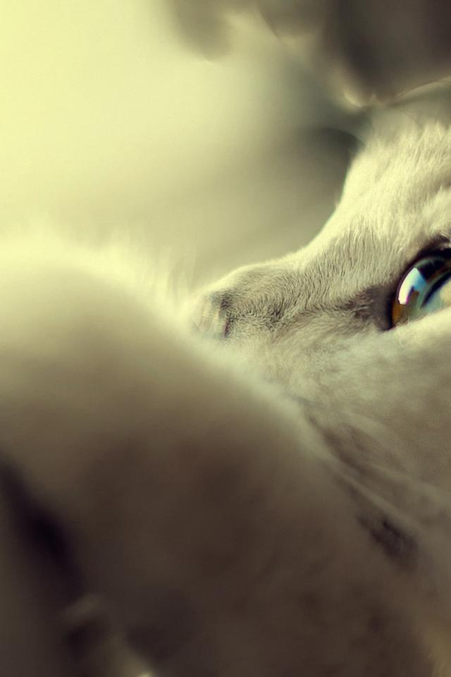 Обои Белый кот спрятался