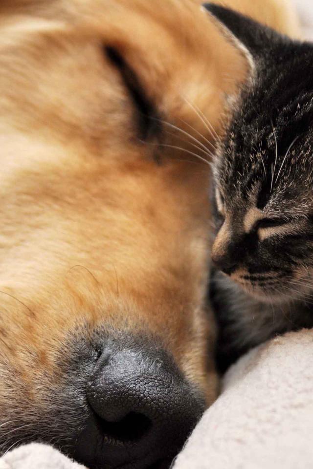 Обои Кот и пёс спят