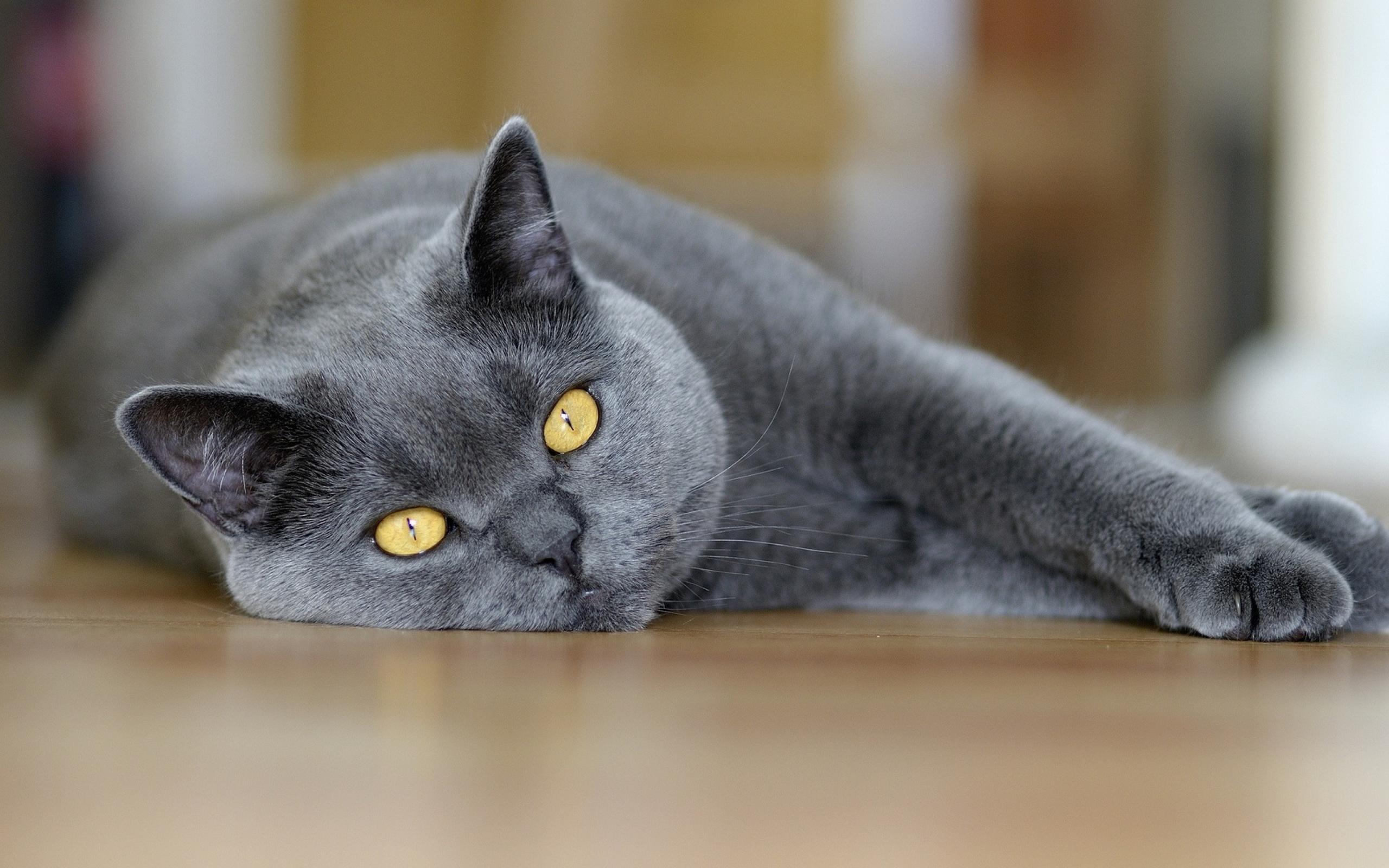 Обои Британский кот лежит на полу