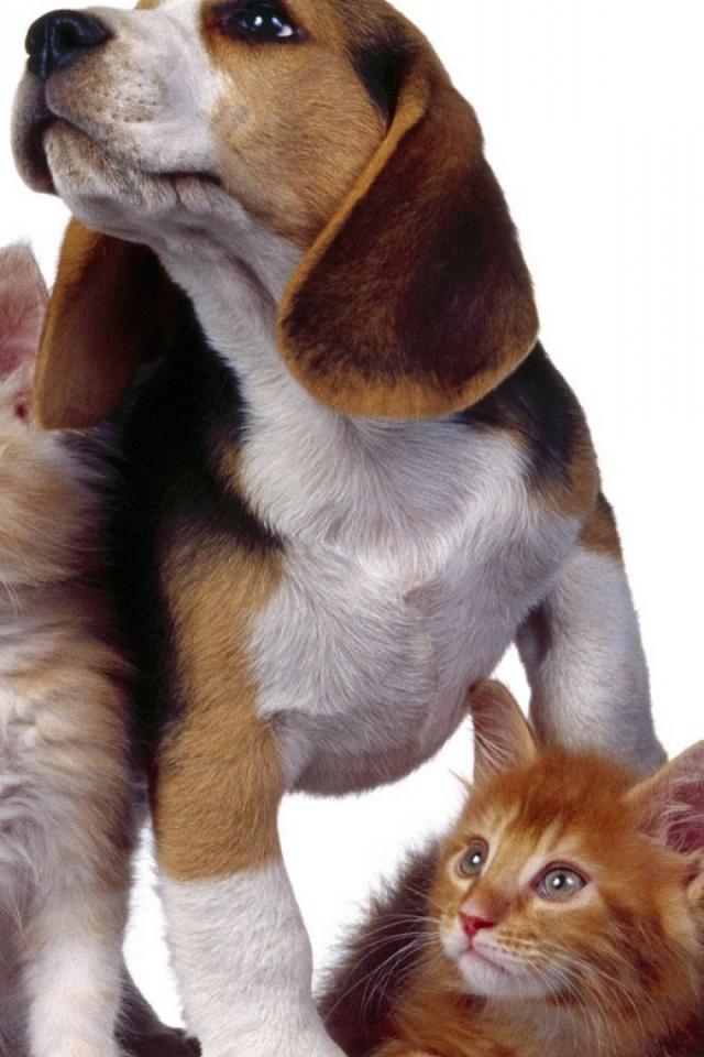 Обои Собака и три котенка
