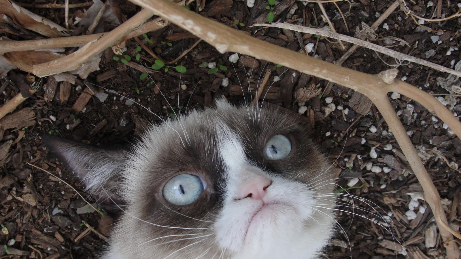 Обои Grumpy cat на земле