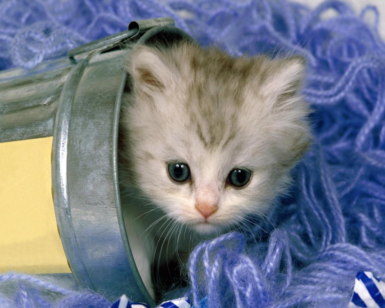 Обои Котенок в нитках