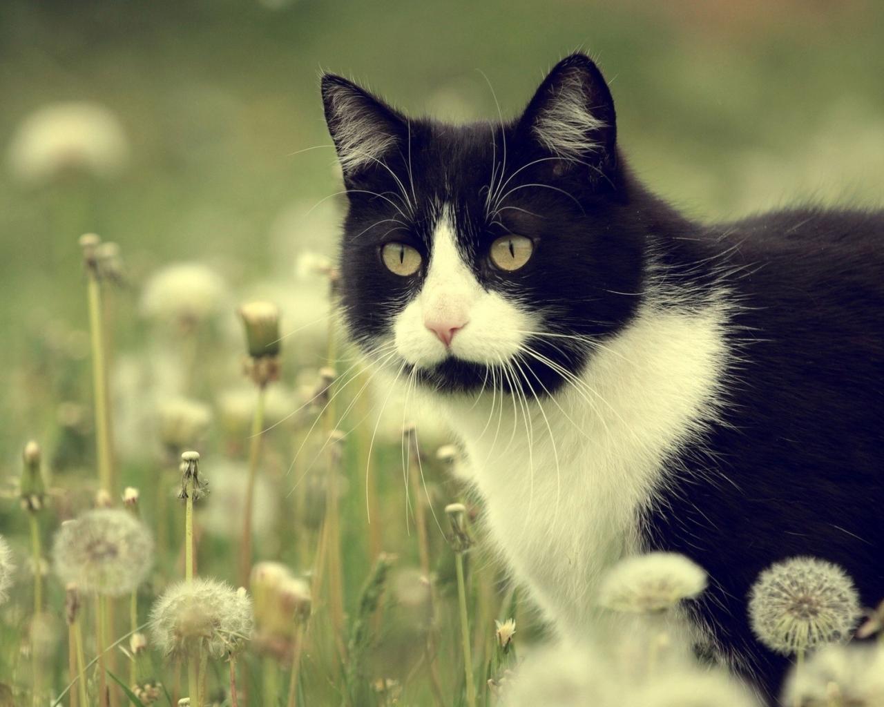 Обои Кот в одуванчиках
