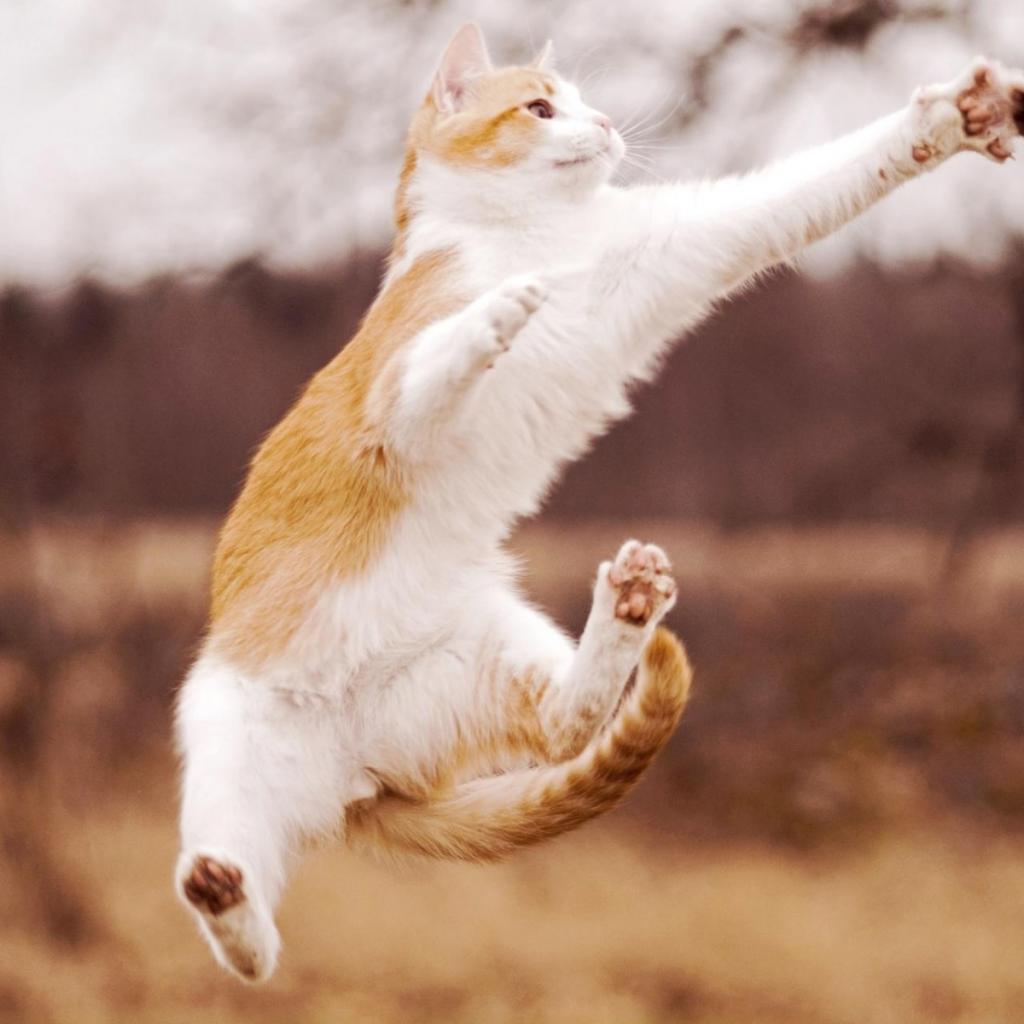 Обои Кошка прыгает за шишкой