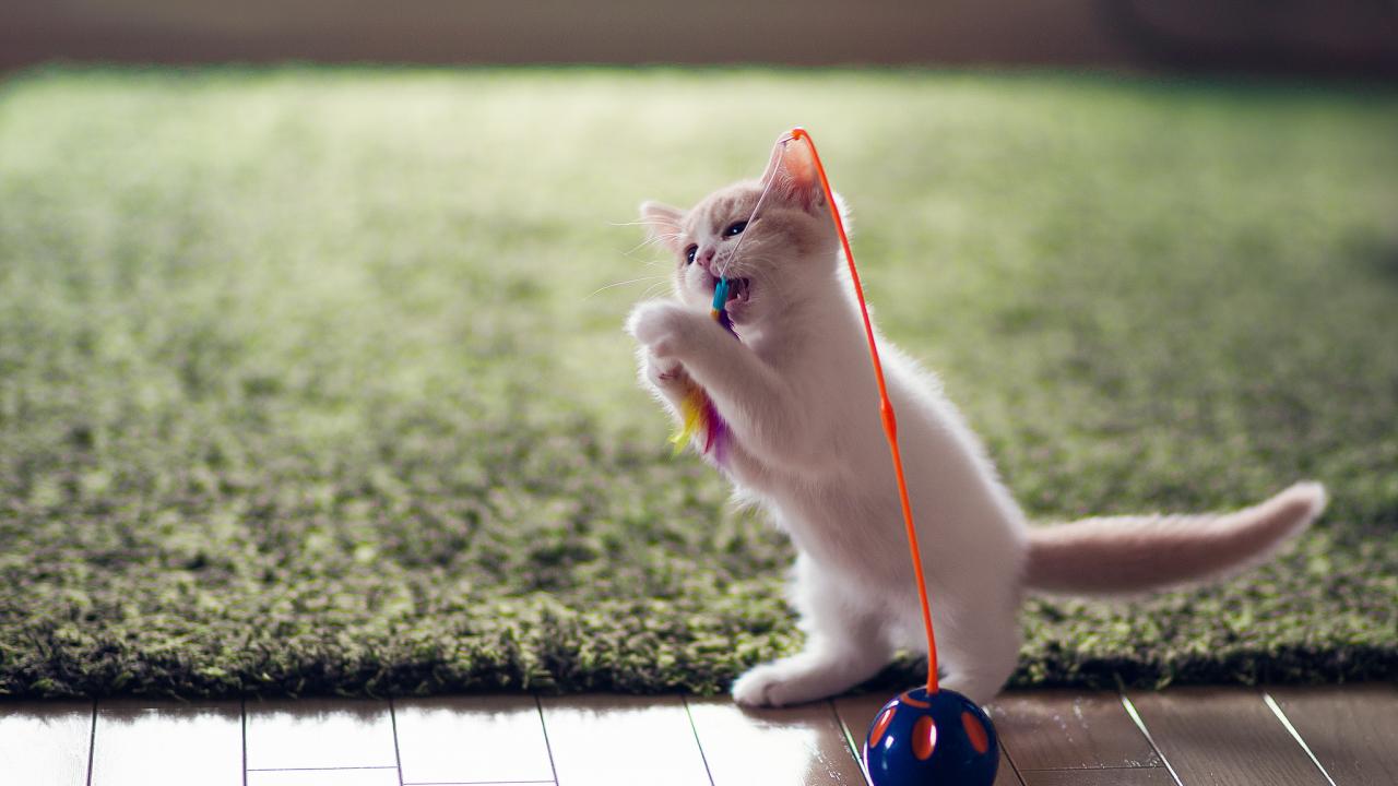 Обои Котенок играет с перьями
