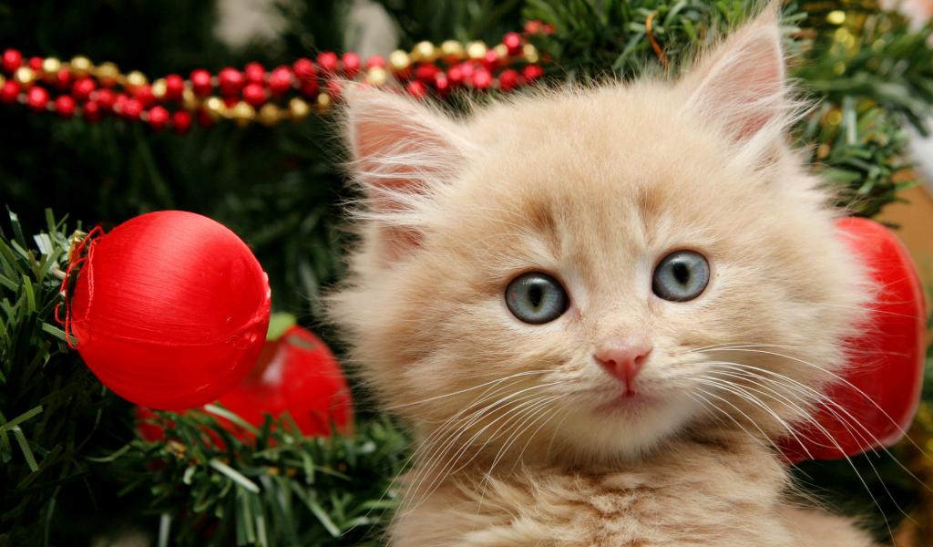 Обои Котенок и елка