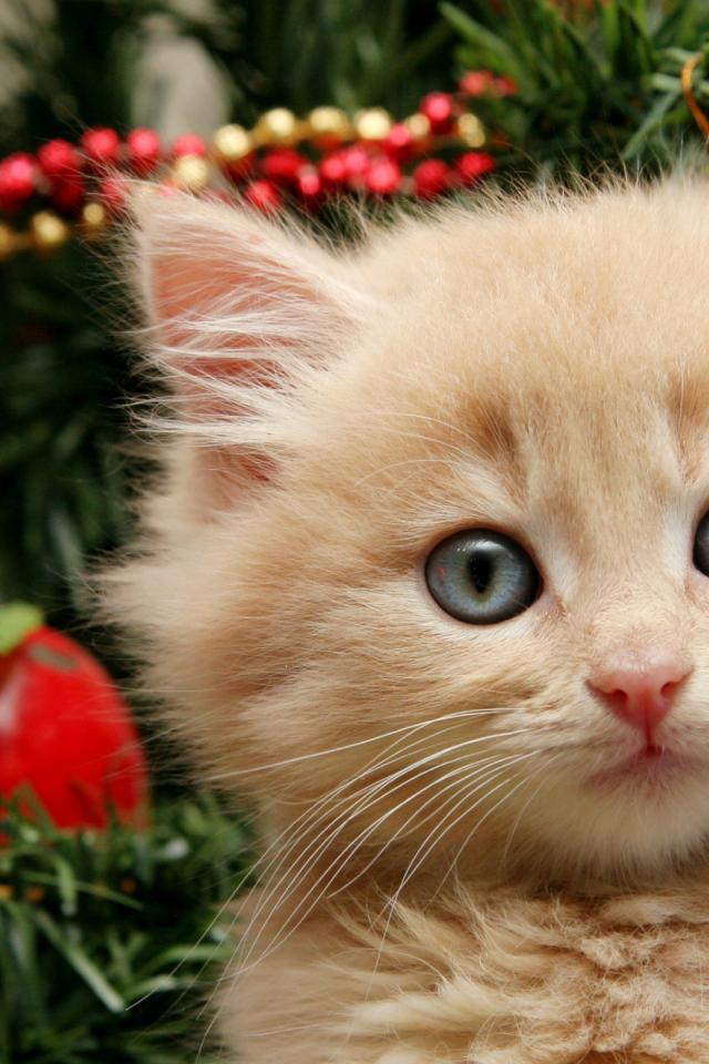 Обои Котенок и елка