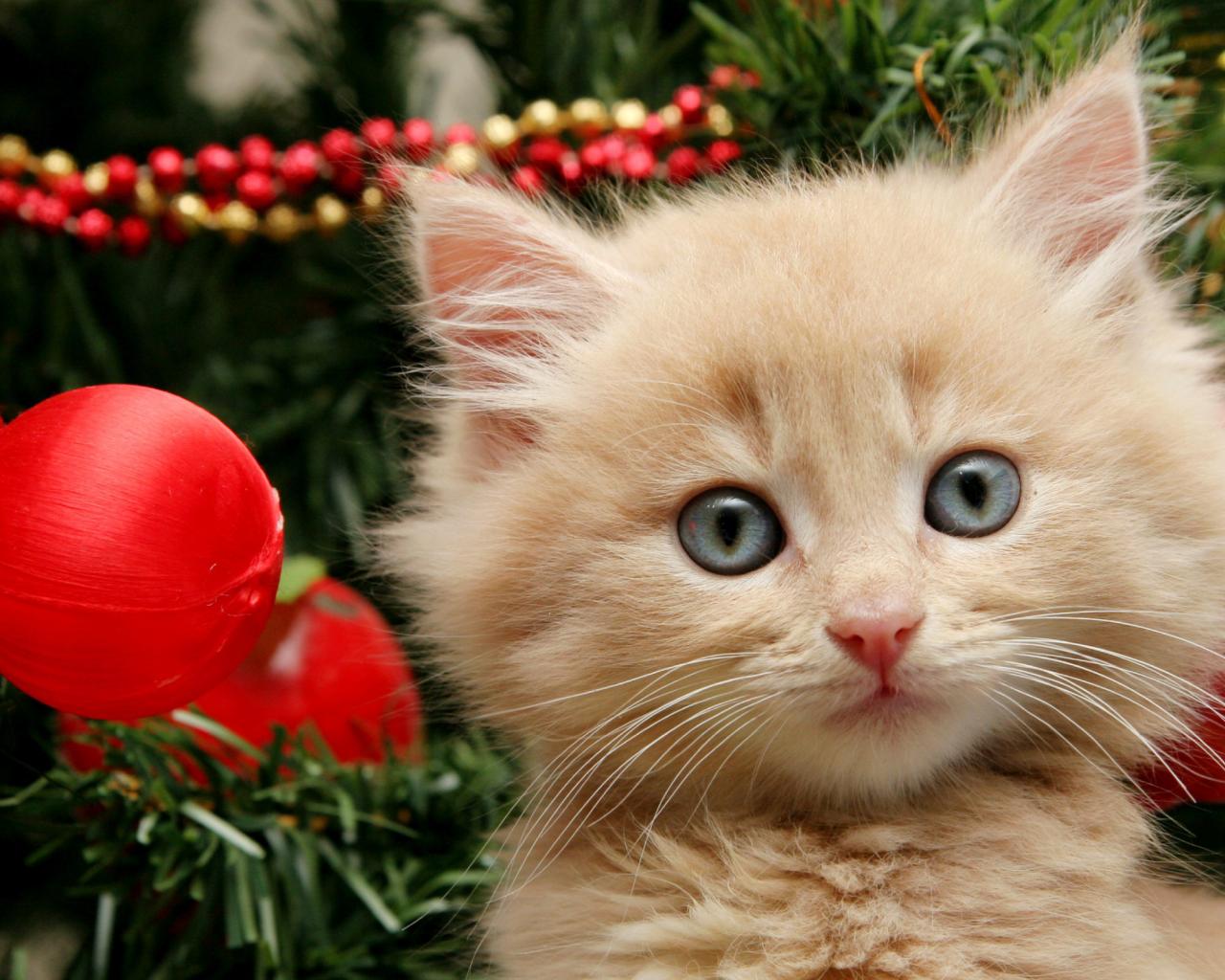 Обои Котенок и елка
